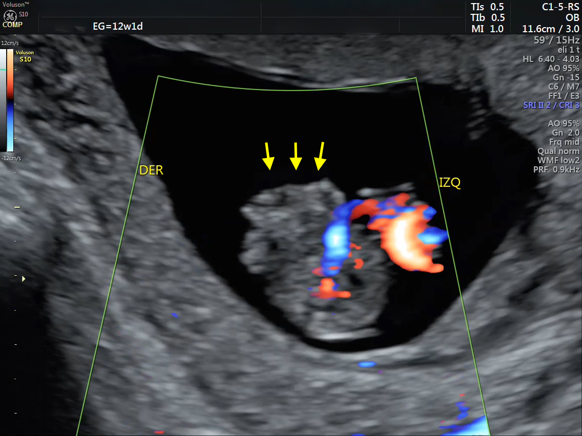 La gastrosquisis corresponde al grupo de anomalías siempre detectables durante el estudio de la semana 11-14 y su pronóstico depende fundamentalmente de las complicaciones gastrointestinales recientemente mencionadas, ya que rara vez se asocia con aneuploidías y las anomalías extraintestinales son poco frecuentes. Por tal motivo el seguimiento prenatal debe estar dirigido a la evaluación del crecimiento fetal y a la observación de signos relacionados con atresia intestinal 3.